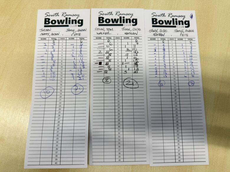 In the other half of the draw the current holders Jordan Cain, Glynn Hargraves (South Ramsey), and Matthew Quirk (Onchan) also won in seven ends 21-9 against James Teare (South Ramsey), Alison Kearsley (Castletown), and Jenny Moore (South Ramsey), with the final game of the round seeing home greeners Dave Corkill, Richie Davies, and Paul Routledge losing out 11-21 to the Marown team of Jamie Box, Glenn Boland, and Peter Jones.